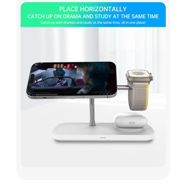 Introducing the T255 Stand Wireless Charger, a cutting-edge multi-functional wireless charging station that charges your smartphone, smartwatch, and wireless earbuds simultaneously. With a new 15W fast charging upgrade, the T255 boosts charging speed by 50%, allowing you to save up to 30 minutes on your charging time. This high-power wireless charger delivers efficient, low-loss energy for faster and safer charging.